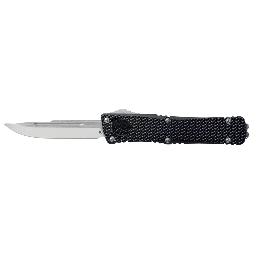 Ce couteau automatique Mini Mamba de marque Cobra Tec est un choix idéal pour les utilisateurs exigeants et les amateurs de couteaux de qualité supérieure. Avec un manche en aluminium noir fini de maniÚre experte et une lame clip point en acier D2, ce couteau est conçu pour durer. Le profil de la lame est idéal pour les tùches de coupe, la lame de 57 mm est suffisamment grande pour couper la plupart des matériaux couramment utilisés.