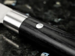 La ligne de couteaux de cuisine Boker Damascus Black combine des manches traditionnellement japonais en contreplaquĂ© noir local avec des lames tranchantes comme des rasoirs en Damas inoxydable avec 37 couches d’acier, caractĂ©risĂ©es par un beau grain. L’âme de la lame Damas, extrĂŞmement rĂ©sistante, est constituĂ©e d’un acier VG-10 très performant. Le tranchant perceptible lors de la coupe est Ă couper le souffle et fait de la cuisine une expĂ©rience. Le design japonais du manche du couteau, avec ses pinces en acier inoxydable mat, confère Ă la ligne son caractère particulier.