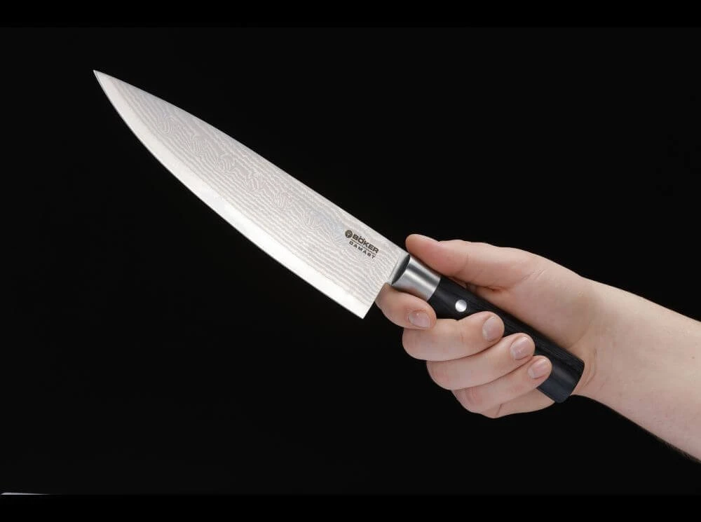 Découvrez ce Couteau de chef Damas 212 mm fabriqué à Sollingen par Böker Cuisine.