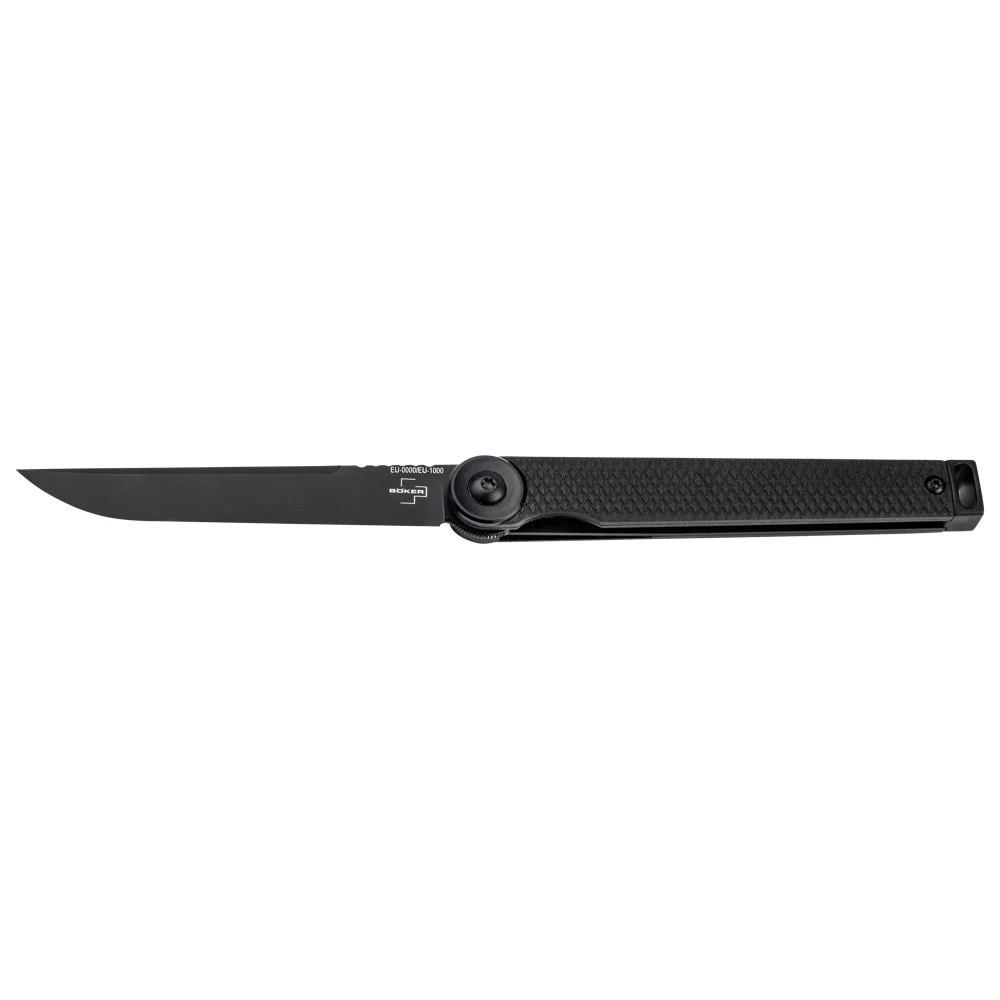 Le couteau de poche Kaizen All Black S35VN Manche G10 Boker Plus est une pièce de qualité supérieure fabriquée en Allemagne. Ce couteau de poche est un outil parfait pour toutes sortes de tâches nécessitant une lame tranchante.