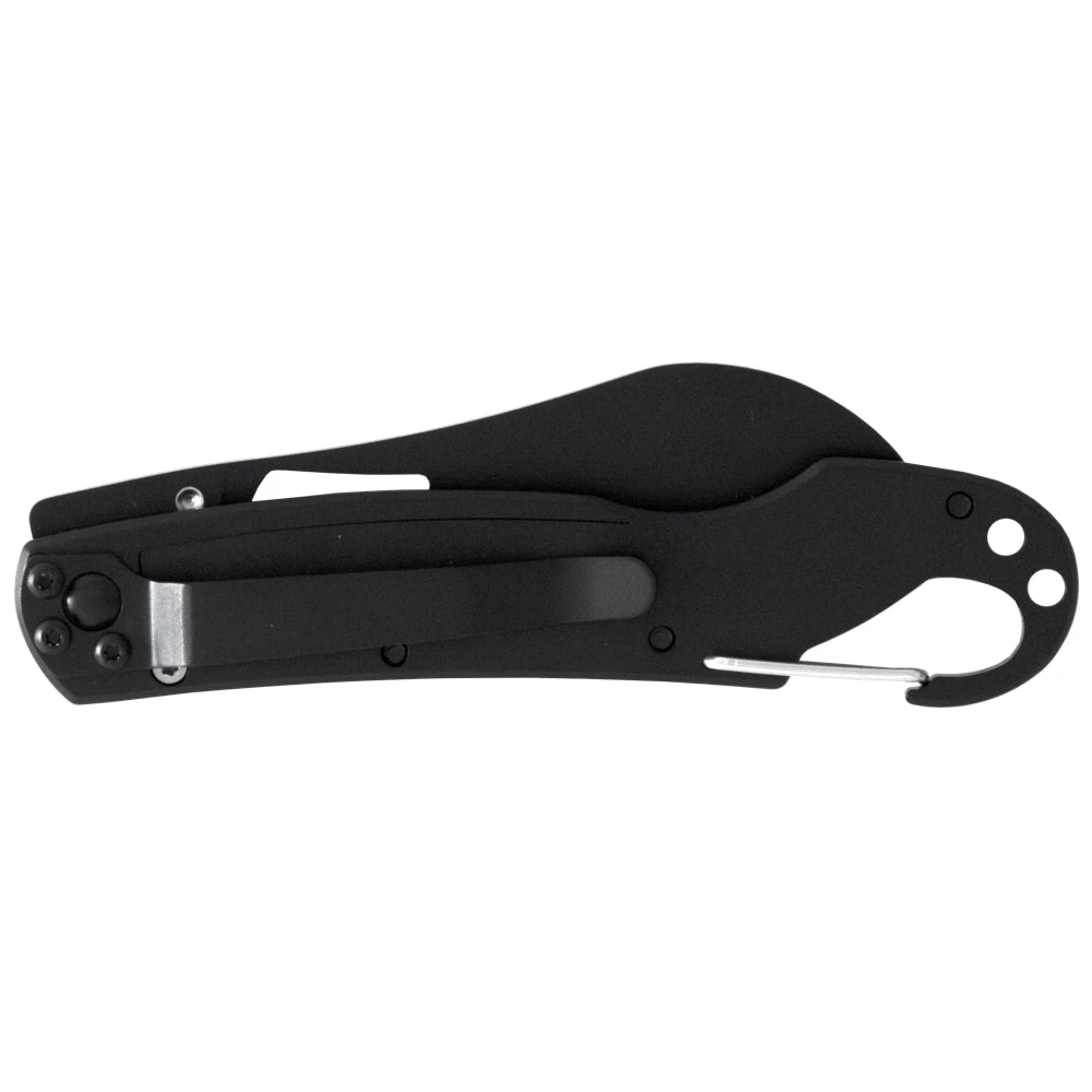 Le verrouillage Frame Lock du couteau de poche SP2T assure une manipulation sĂ©curisĂ©e. Le couteau peut ainsi ĂŞtre verrouillĂ© en toute sĂ©curitĂ© lorsqu’il n’est pas utilisĂ©. Le clip de port permet une fixation facile du couteau Ă une ceinture ou Ă un sac Ă dos, et le mousqueton supplĂ©mentaire ajoute une option de transport supplĂ©mentaire.