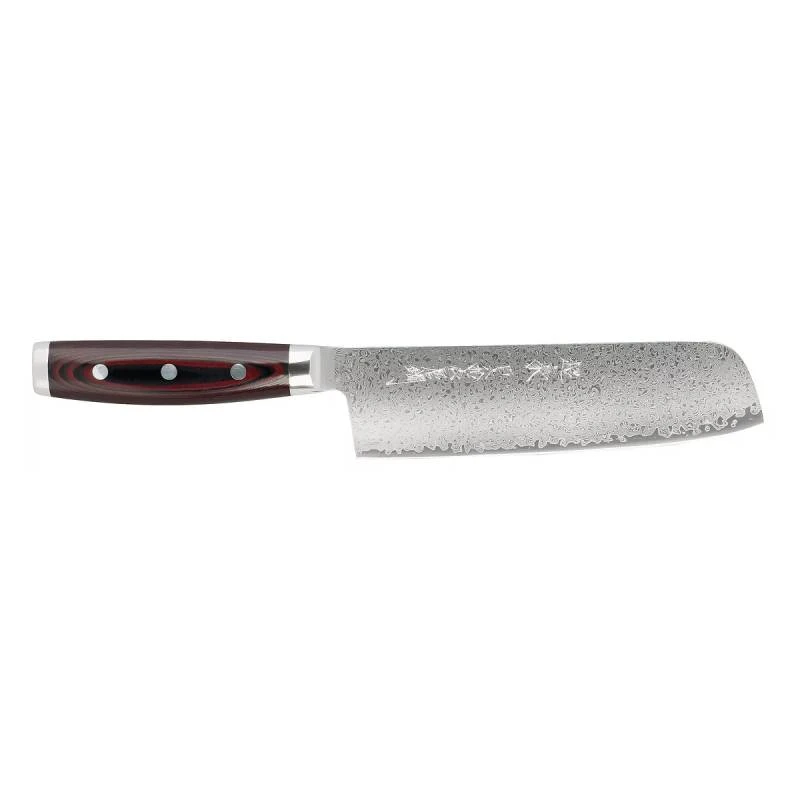 Le couteau Nakiri Super Gou Ă bords creux de Yaxell combine les caractĂ©ristiques d’un couteau de chef avec la polyvalence d’un couperet Ă lĂ©gumes, idĂ©al pour les lĂ©gumes. Les bords creux empĂŞchent les aliments de coller Ă la lame.