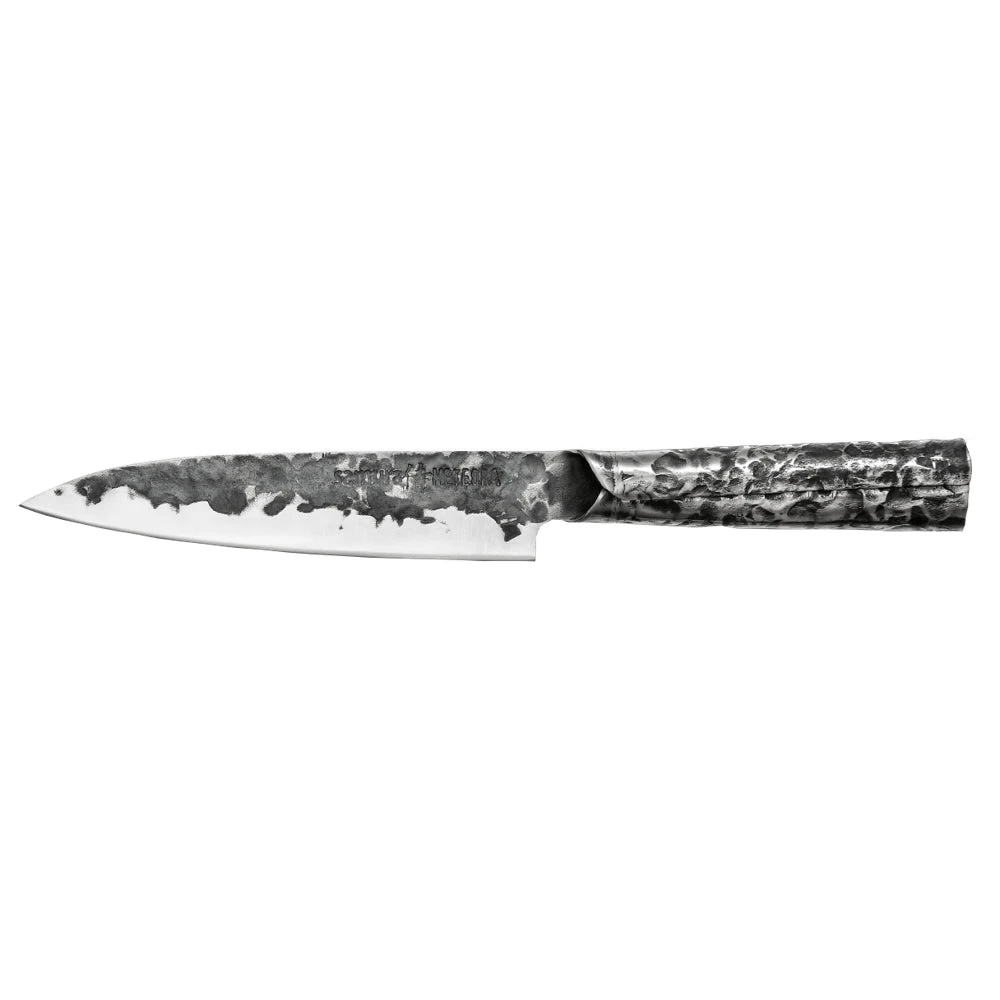Le tranchant lisse de la pointe du Santoku METEORA Manche Damas Samura signifie qu’il n’est pas nĂ©cessaire d’utiliser beaucoup d’efforts pour couper ou hacher vos aliments. De plus, sa conception fixe garantit que la lame restera toujours en place pendant le travail.